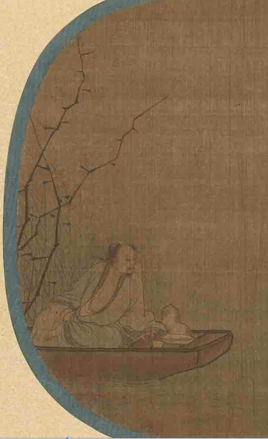 南宋绘画大家马远绘制的小品《舟人形图》——画面构图很有特色,核心元素都集中左下角部分,怪不得马远被称“马一角”。画幅虽小却显苍茫无际,一人,一船,一杯,一盘,一葫芦,一杯酒下肚,便成了一个人的江湖~