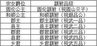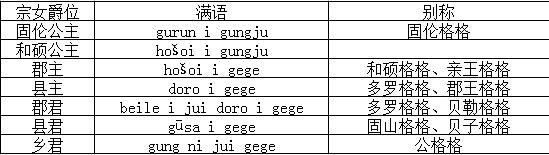 这样便正式形成了清代宗女的几个等级,即依照父亲爵位和母亲的身份来决定女儿的爵位。