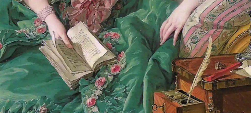 《蓬巴杜夫人》细节/满室书香,玉指衔册