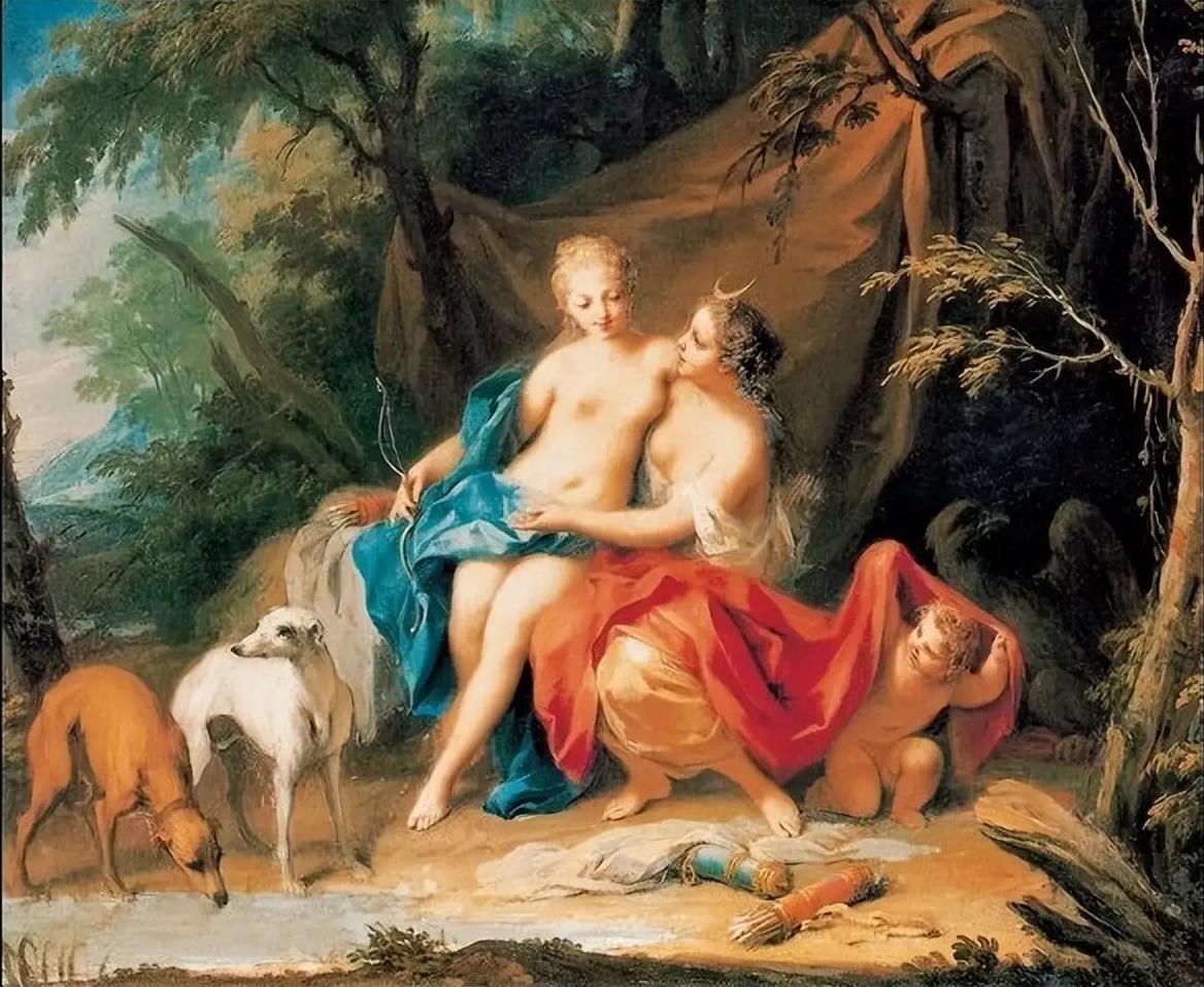 阿米戈尼虽然深受罗可可艺术影响,但又不完全是罗可可风格的画家,画中有较多的古典主义风格倾向,他的代表作是这幅《朱庇特和卡利斯托》。