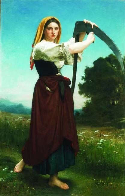 在这幅画中,布格罗旨在创造一个动乱年代中法国人抵御外来入侵的形象,为此他选择了手持大镰刀收获庄稼的农妇,她昂然挺立,充满豪气,代表了法国人民的崇高和坚强。农妇的形象生动地表现了法国人民的爱国情操,以及这个民族绝不屈服于敌人的坚定决心。