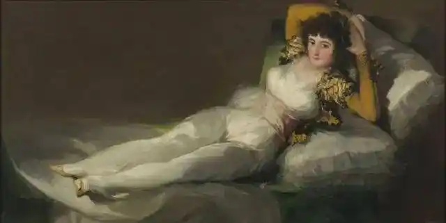 作品名称:《着衣的玛哈》(西班牙语:La Maja vestida)(La Maja Desnuda\The Nude Maja)