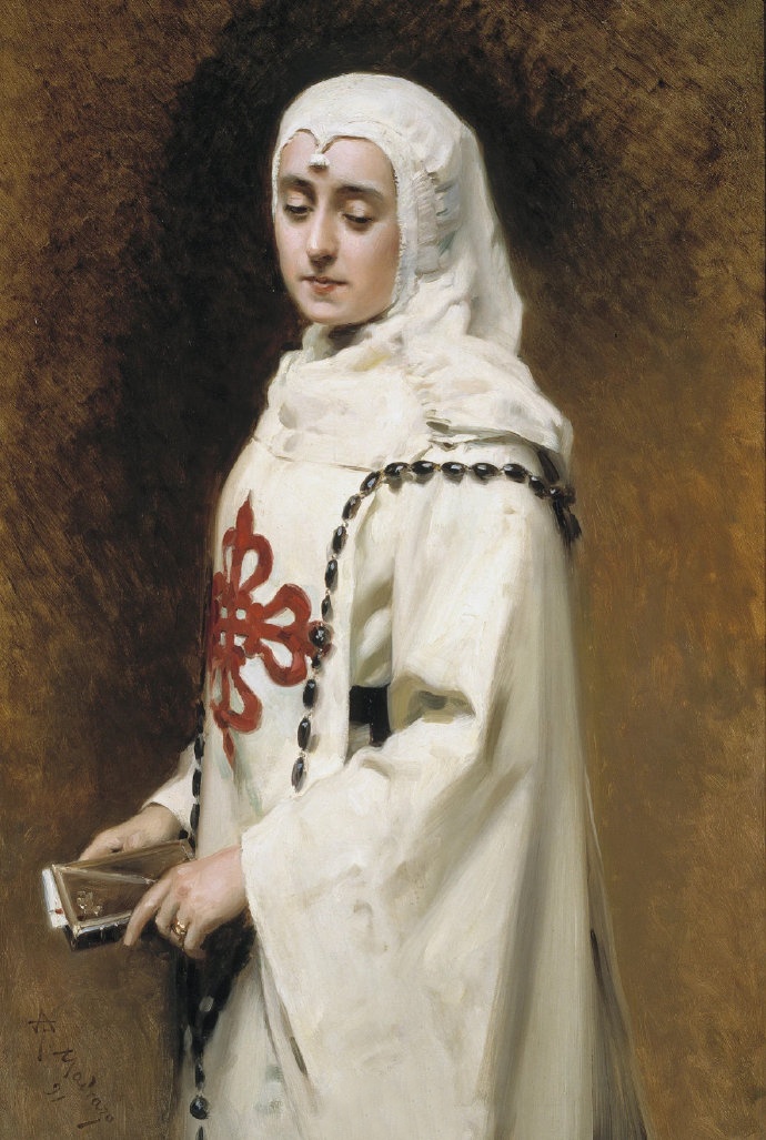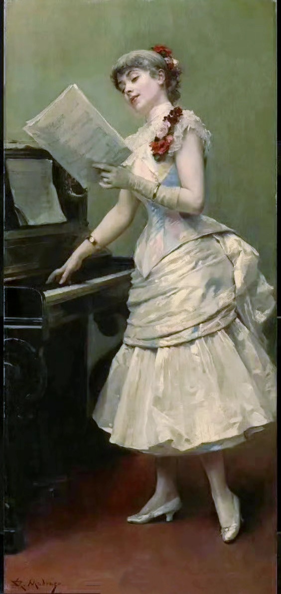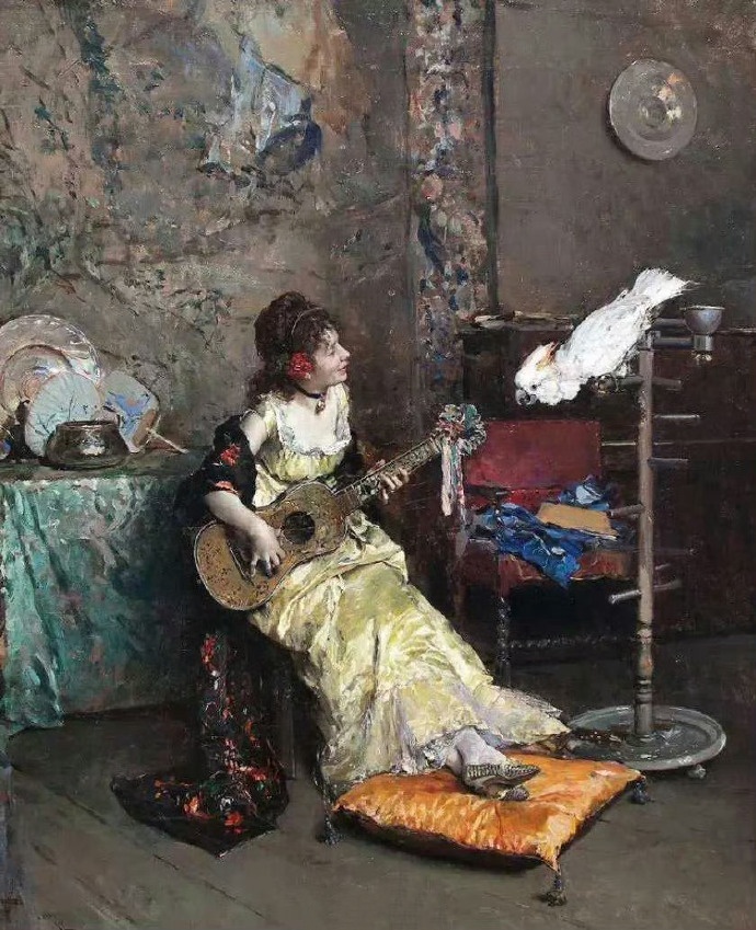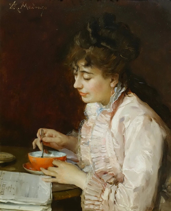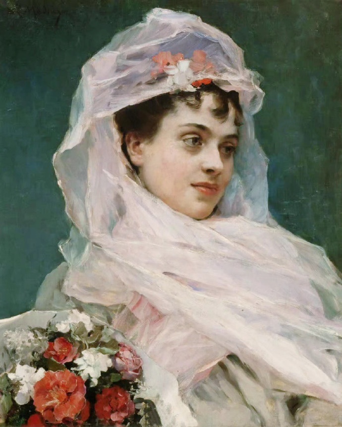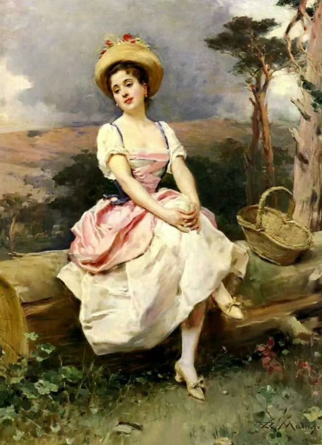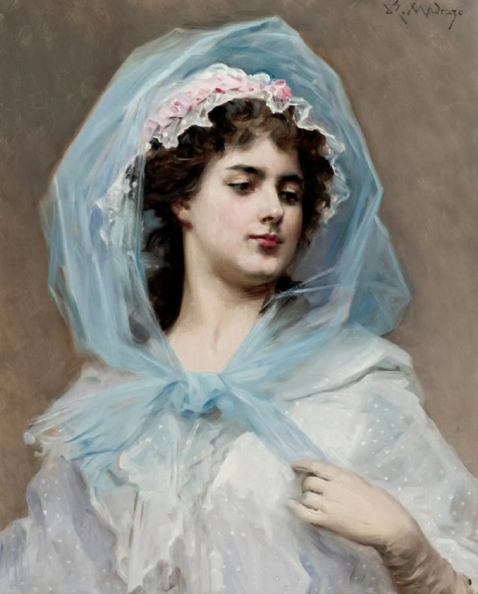 西班牙画家雷蒙多·马德拉索(西班牙语:Raimundo de Madrazo)( 1841-1920)以写实风格进行创作,作品主要包括肖像画和风俗画,尤其在描绘女性形象方面造诣颇高。他的绘画以精致的细节、柔和的色调和优雅的氛围著称,生动展现了十九世纪欧洲的风貌。