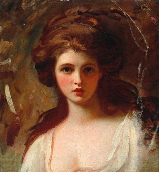 如果说到艾玛·哈特最有名的身份的话,大概就是她在1998年或1999年成为了纳尔逊勋爵的情妇,除此之外,她还是伦敦当时最时尚的肖像画画家的缪斯。她为罗姆尼当了超过一百次的模特,画家绘制了60幅左右的画作。当她在17岁扮成女妖瑟西的时候,就已经是一位卓有成效的女冒险家了。罗姆尼的笔触抓住了艾玛有名的红褐色长发的奢华质感,脸颊左部的阴影突出了艾玛的惊讶之情。
