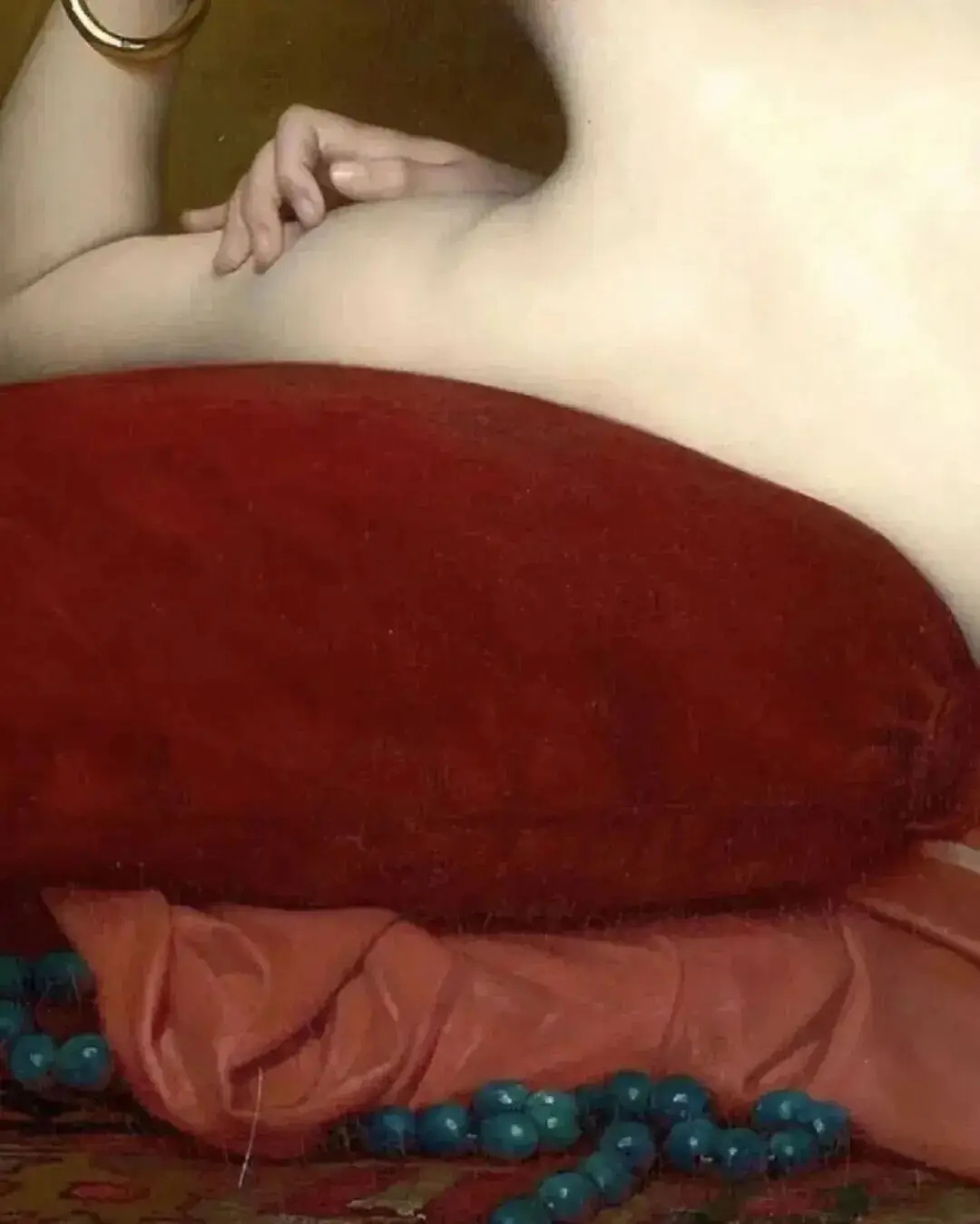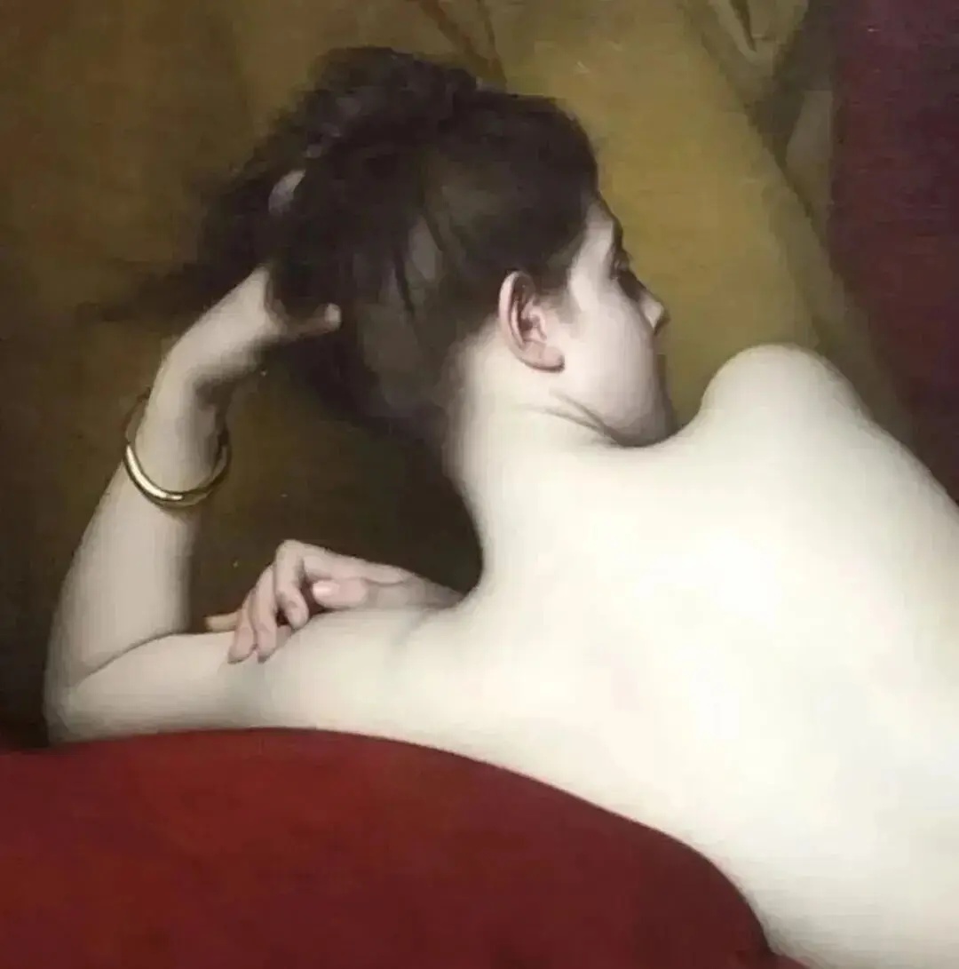 这幅画太“抓眼球”了。那姿态绝了,这般姿态绝非刻意设计的僵硬造型,更无刻意迎合镜头的做作感,而是呈现出一种仿佛刚从休憩中醒来、身体尚未完全舒展的慵懒之态 —— 肩膀自然下垂,带着几分松弛的惬意;腰腹随呼吸节奏微微起伏,每一处线条都透着未经雕琢的生动。