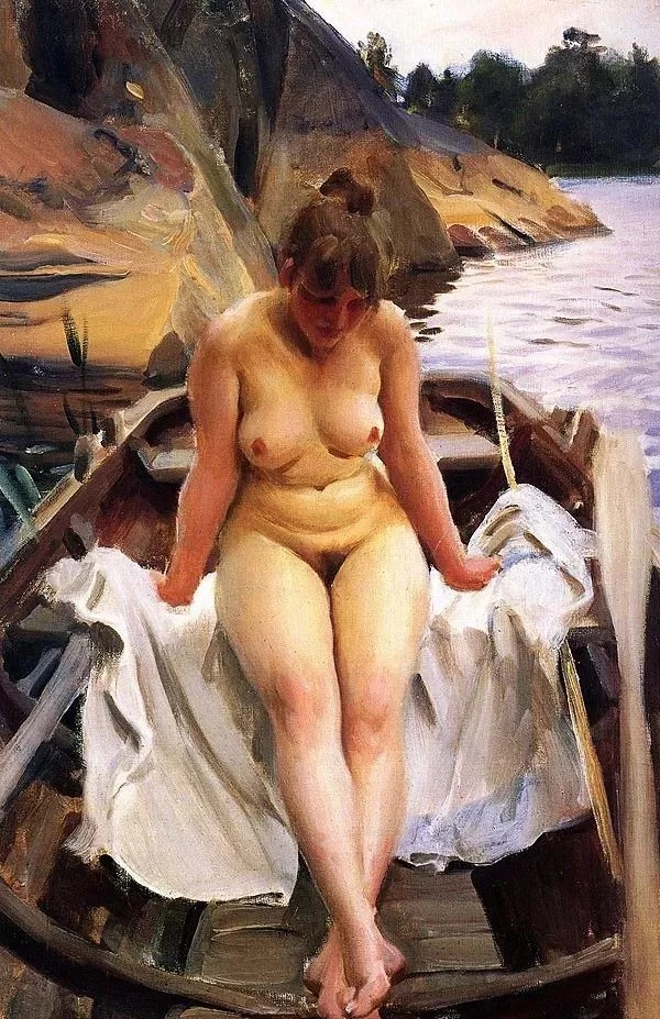 瑞典著名画家安德斯·佐恩《在沃纳划的船上》