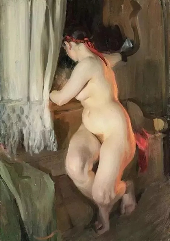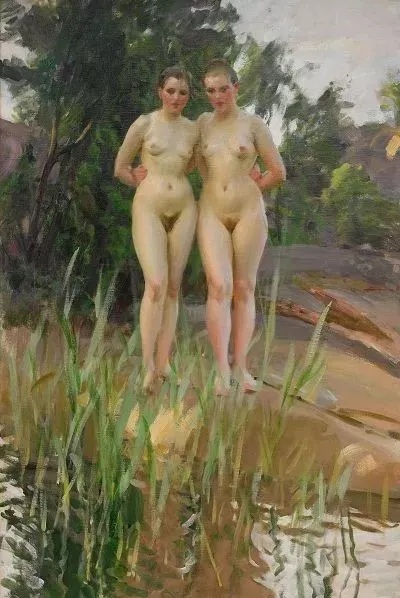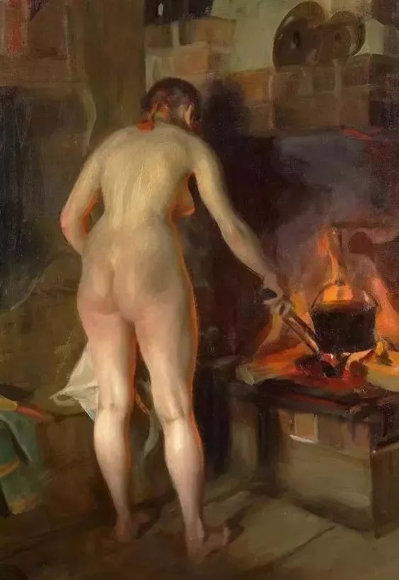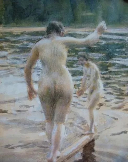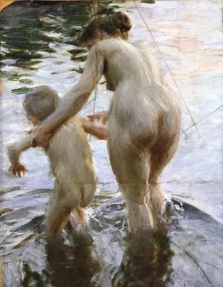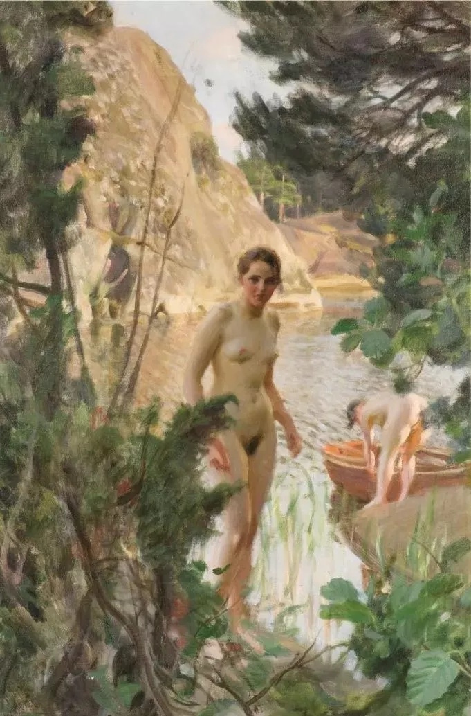 瑞典著名画家安德斯·佐恩《在沃纳划的船上》