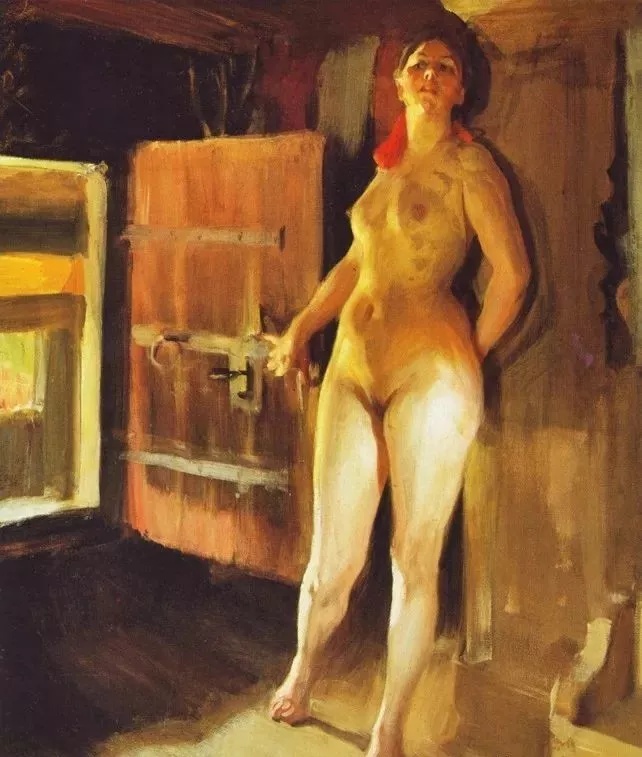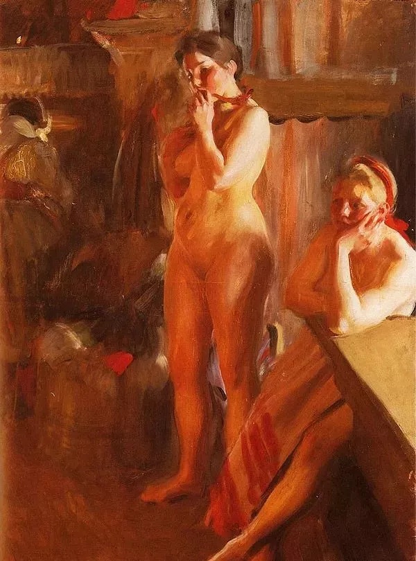 瑞典著名画家安德斯·佐恩《在沃纳划的船上