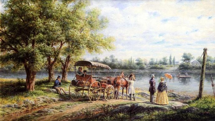 与描绘磅礴自然的哈德逊河画派不同,亨利笔下是19世纪美国温暖的日常——驿站马车扬起的尘土、女士裙摆摩擦的声响、老旅馆木地板的吱呀声...