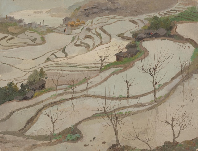 吴冠中油画《乡村春色》