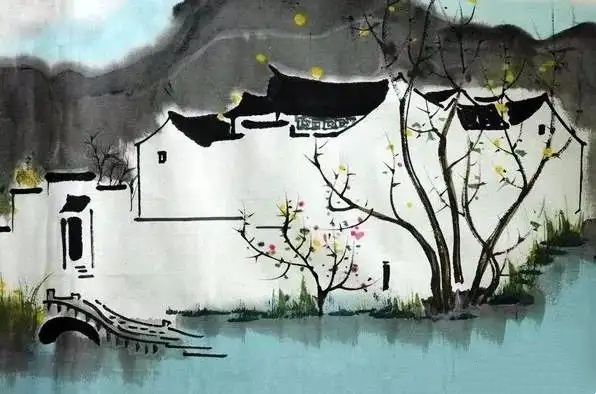 吴冠中 作品《春到江南》 --- 整个画面由点、线、面组成了一幅典型的早春江南景色。画风用笔简练,而历史的悠远、乡情的祥和、生活的美满与自然的生机扑面而来。