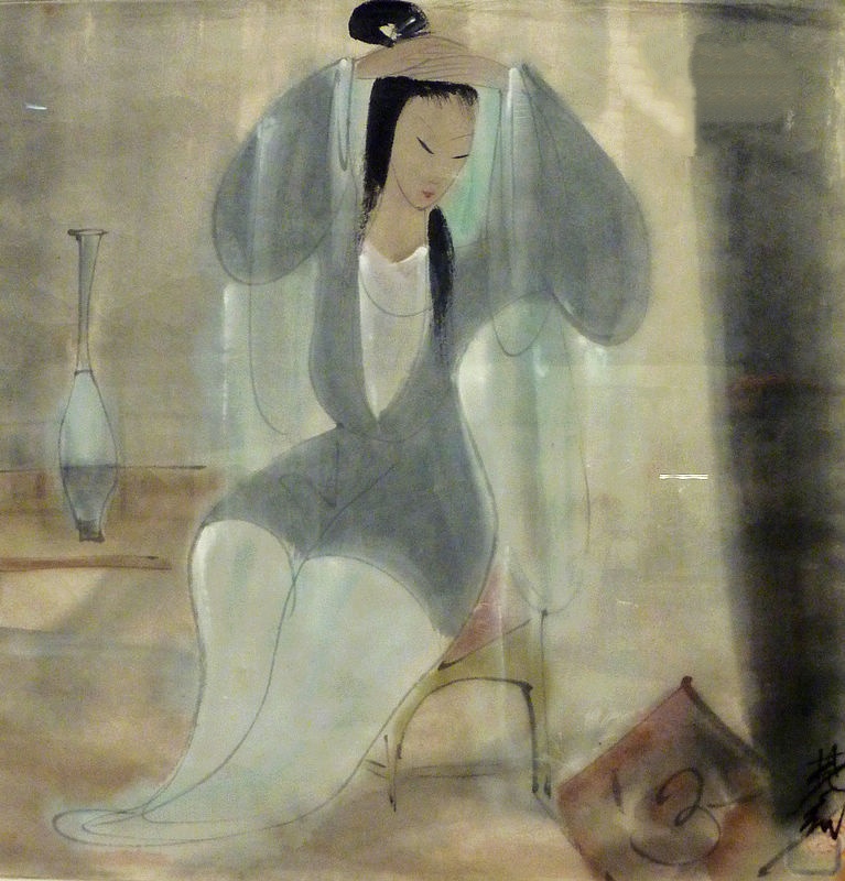 4、纸本水墨设色《梳头仕女》1950年代 作者:林风眠 上海美术馆藏
