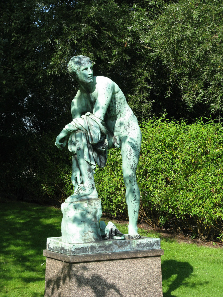 《系鞋带的赫耳墨斯》(Sandal-Binder,或者Hermes fastening his sandal=直译:赫耳墨斯正在紧固他的凉鞋),哥本哈根植物园(Botanical Gardens)。
