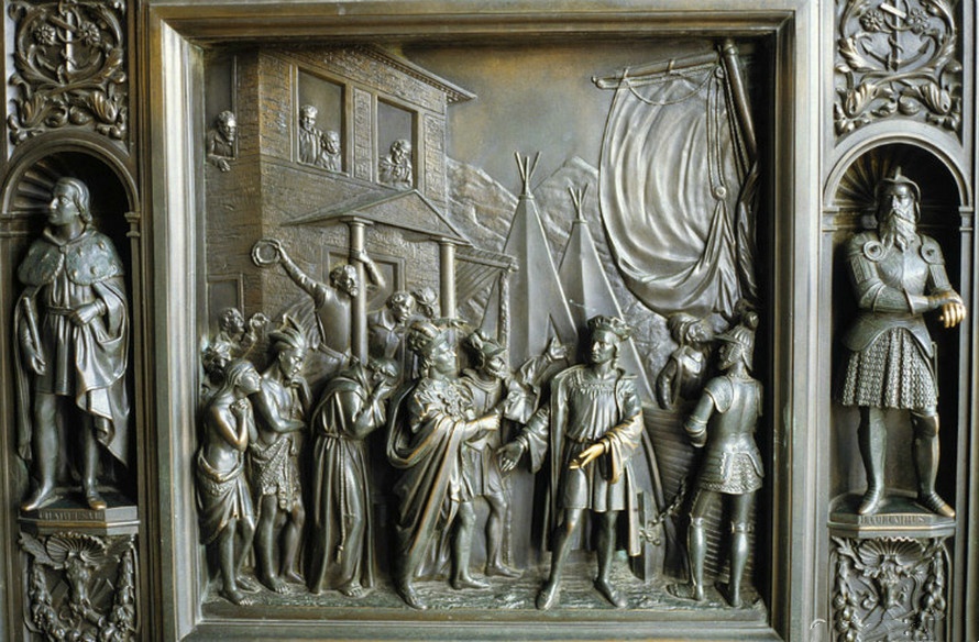 《哥伦布门》(Columbus Door)上的浮雕之一。