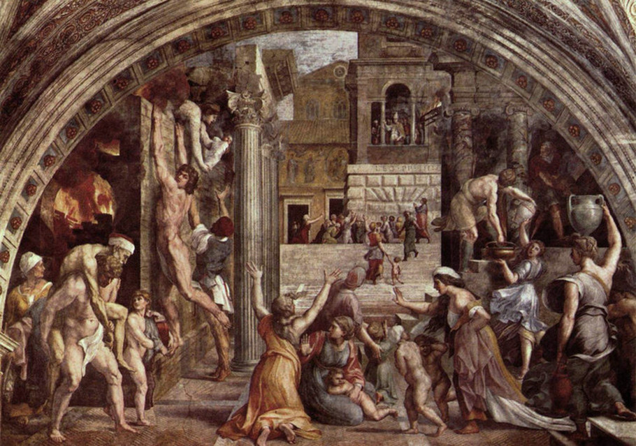 《博格尔之火》(The Fire in the Borgo )。描述了公元847年的一个奇迹。大意是罗马城的博格尔失火后,人们忙于救火。这时候,教皇利奥四世(Pope Saint Leo IV)出来祈祷而控制了火灾。