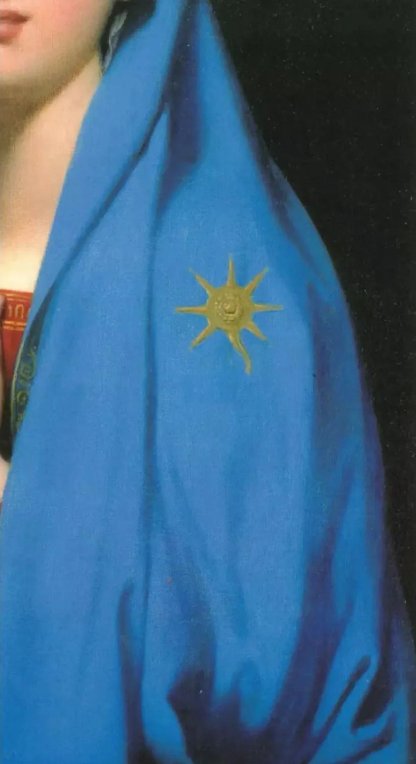 整幅画作画面干净、细腻,用笔严谨,造型准确。构图平整、对称、规则,色彩色相单纯,光滑过渡,令人赞叹不已。画中的圣母形象纯净、优雅,展现了安格尔对女性美的独特理解。
