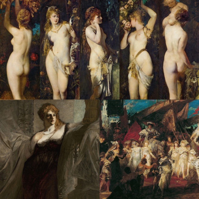 汉斯·马卡特 Hans Makart(1840-1884)这位引发了狂热崇拜的奥地利艺术家,对诸如古斯塔夫·克里姆特等世界闻名的艺术家都形成了不同程度上的影响,他是维也纳高雅文化的代名词之一,被称为“色彩魔术师”,一生在历史画、设计和装饰领域都颇有成就。