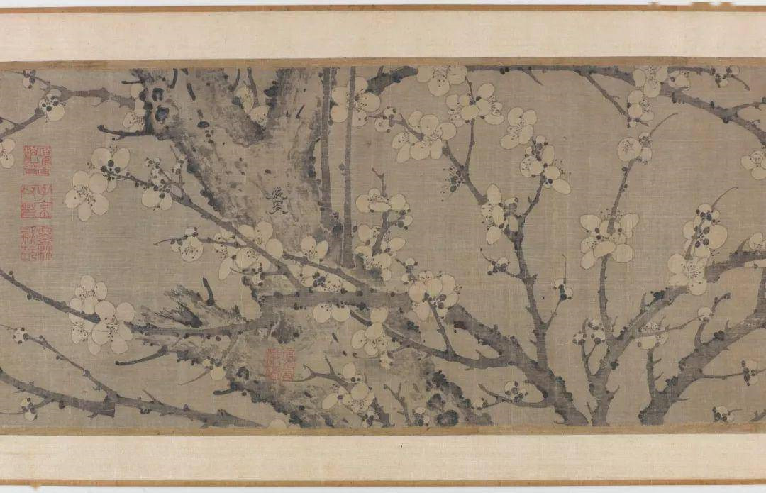 乾隆九年春月,臣张照等奉敇编次。乾隆御赏:宋王岩叟画《梅花》