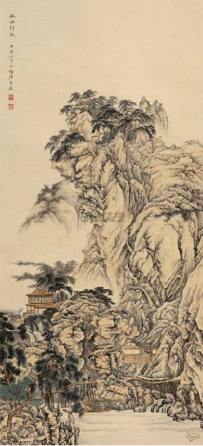 此《万壑松风》图是陈少梅先生为夫人冯忠莲所作,为陈老细笔山水之精品代表,得仇实父之真传。