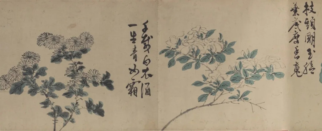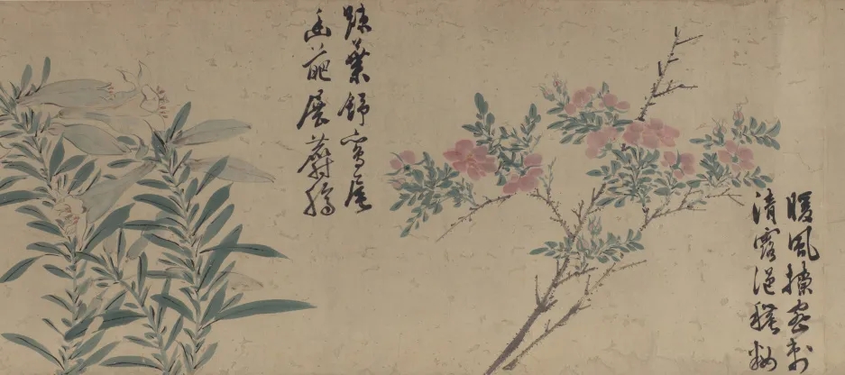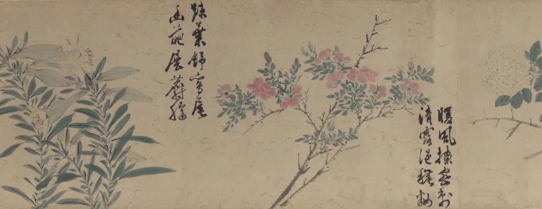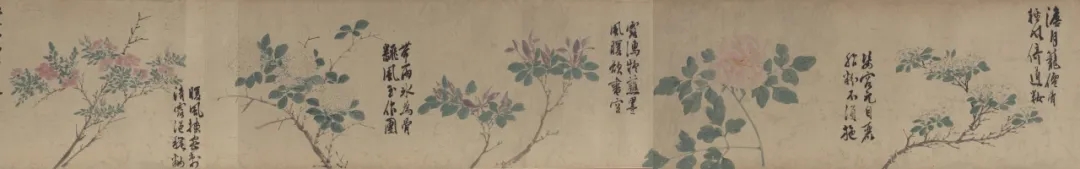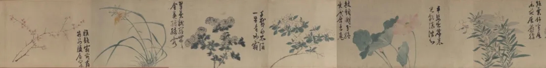明 陈淳 四季花卉图卷,纸本设色,纵44厘米,横670.5厘米。