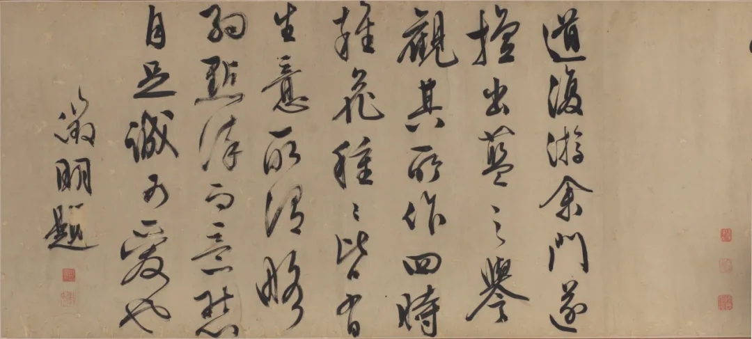这件作品是陈淳极晚年之作,亦是画家擅长的长卷。本卷有670.5厘米,如此尺寸巨幅在陈淳的作品中比较少见。