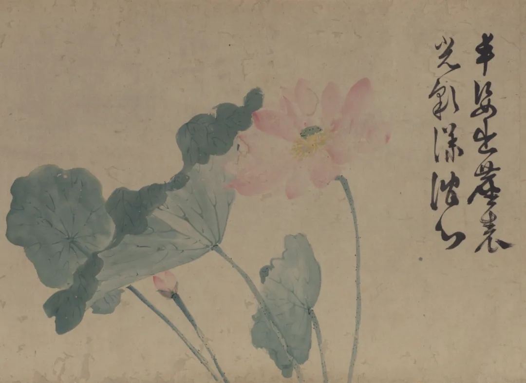 花卉以没骨设色和勾花点叶法绘之,用笔简率放逸,浅色没骨,墨淡似无,极为生动。梨花、绣球、百合、栀子花、菊花的花瓣皆以淡墨或浅色勾勒,线条随着花瓣阴阳转侧或粗或细,或虚或实,或断或连,或疾或徐,尽显花瓣自然形态与质感,既写意又写真。牡丹、玫瑰、荷花则以没骨设色绘之,色浅如化入纸中一般,颜色如水墨晕染般富有层次,清雅脱俗。