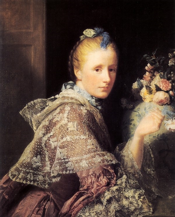 这幅画展示了拉姆齐在第二次访问意大利(1754-57)后的成熟风格。画面中的夫人披着精致的蕾丝披肩,手里拿着一朵准备插入花瓶的鲜花,柔和的光线洒在她的脸上。她转过头来看向丈夫,也正好迎接了观者的目光。