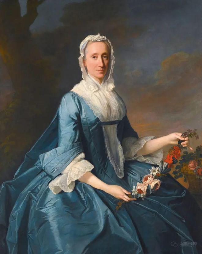 这幅画作展现了一位身着华丽礼服的女士,其优雅气质跃然纸上。描绘了一位华丽装扮的女士,展现了18世纪上层社会的风采通过精湛的绘画技艺,艾伦·拉姆齐成功地捕捉了这位女士的独特魅力,让我们得以一睹18世纪上层社会的风采。