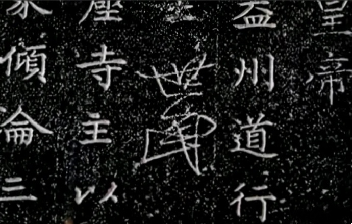行书“世民”两个字是唐太宗存世的唯一签名笔迹,刻于登封少林寺《皇唐嵩岳少林寺碑》。