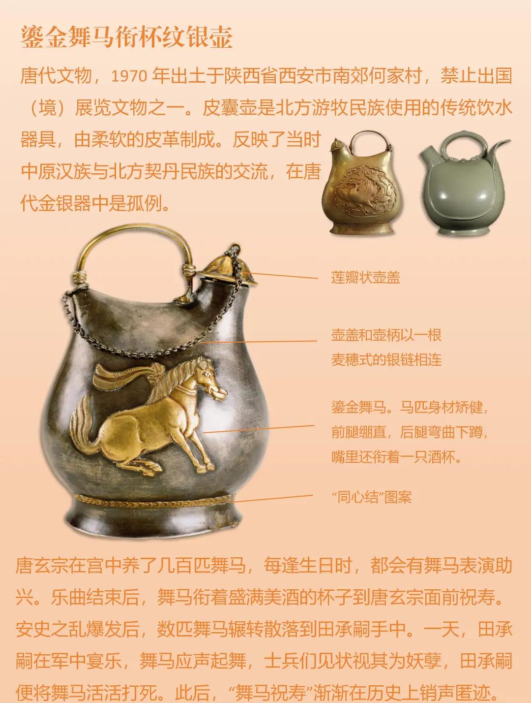 鎏金舞马衔杯纹银壶:独特造型,舞马场景鲜活,奏响大唐宫廷乐韵。