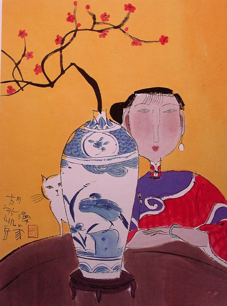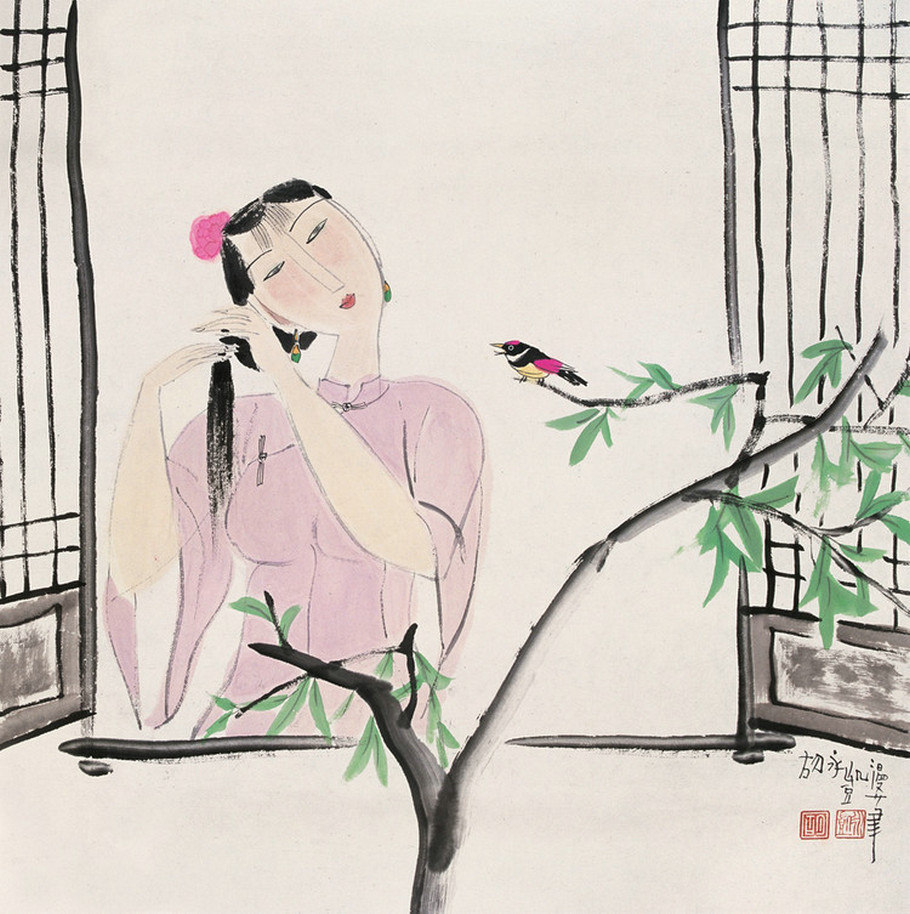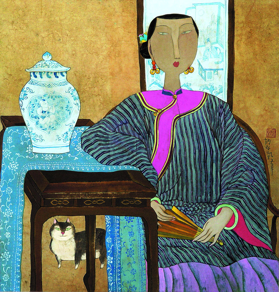 在当代画坛上,胡永凯的人物画可称独树一帜,很受瞩目,凡是看过他画的人物都有肯定的评价。他自上世纪80年代末移居香港和美国,可是他的艺术似乎并未受到光怪陆离的西方现代艺术的影响,仍然是一种平实、自然的面目,既没有狂放抽象,横涂竖抹以惊世骇俗,也没有过度修饰,搔首弄姿取媚世俗迎合市场。他的画以女性为主题,他的作品“情趣”、“兴趣”“趣味”随处流露,令作品趣味横生、回味无穷。
