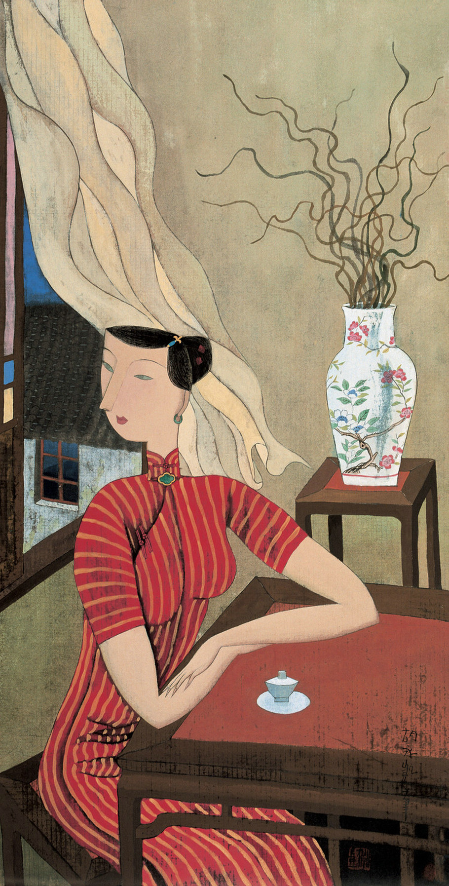 胡永凯的画题以女性为主,都是美丽地坦陈着、幽幽地述说着自己的命运、际遇、愿望和隐秘的女人。就形式感方面讲,胡永凯似乎很聪明地把握着一个“度”,一个近乎“中庸”的度:在写实与变形之间,在线描和体面之间,在抽象和具象之间,在色彩的淡雅和灿烂之间,都把握得恰到好处·他的画,既有相当的严肃:有写实的个性描绘、有学术性的认真(黄永玉先生语),又有调侃式的入骨三分的夸张,还有赏心悦目、不伤风雅的唯美抒情。