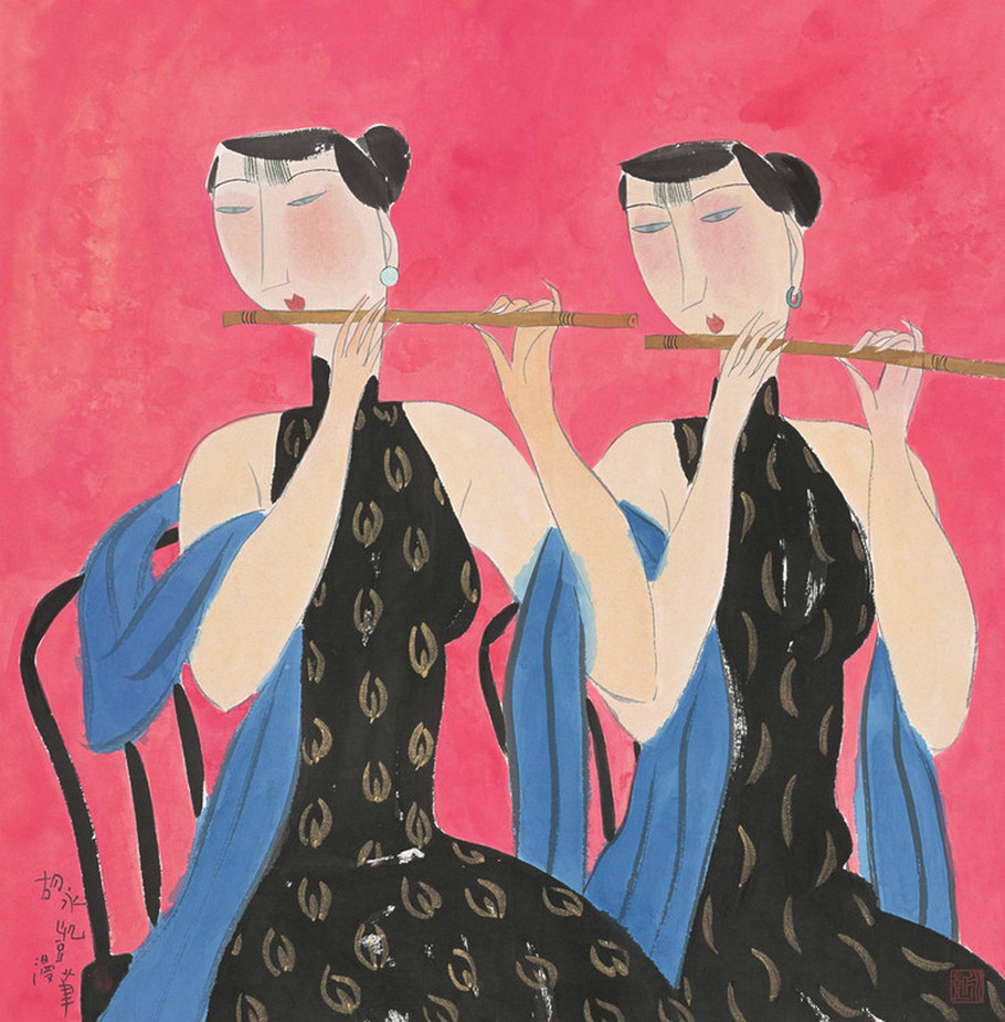 其画风独特,将中华文化的内在韵味和西方文化的外在张力有机地融会,把传统东方绘画的线条美与现代绘画的色彩美巧妙的结合,他以现代人的视角对传统艺术进行再诠释,创造出既富东方情调又具时代气息的鲜明画风。