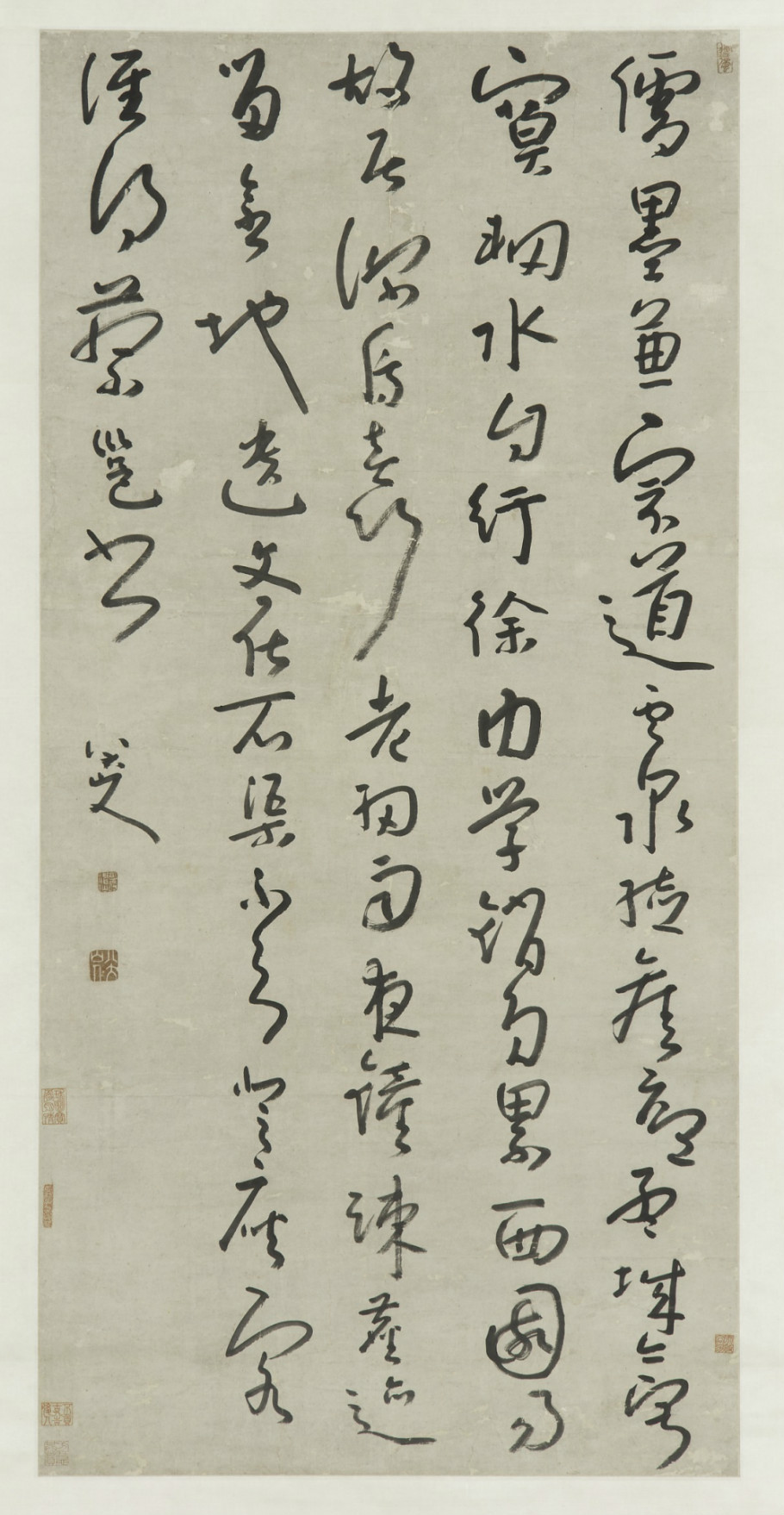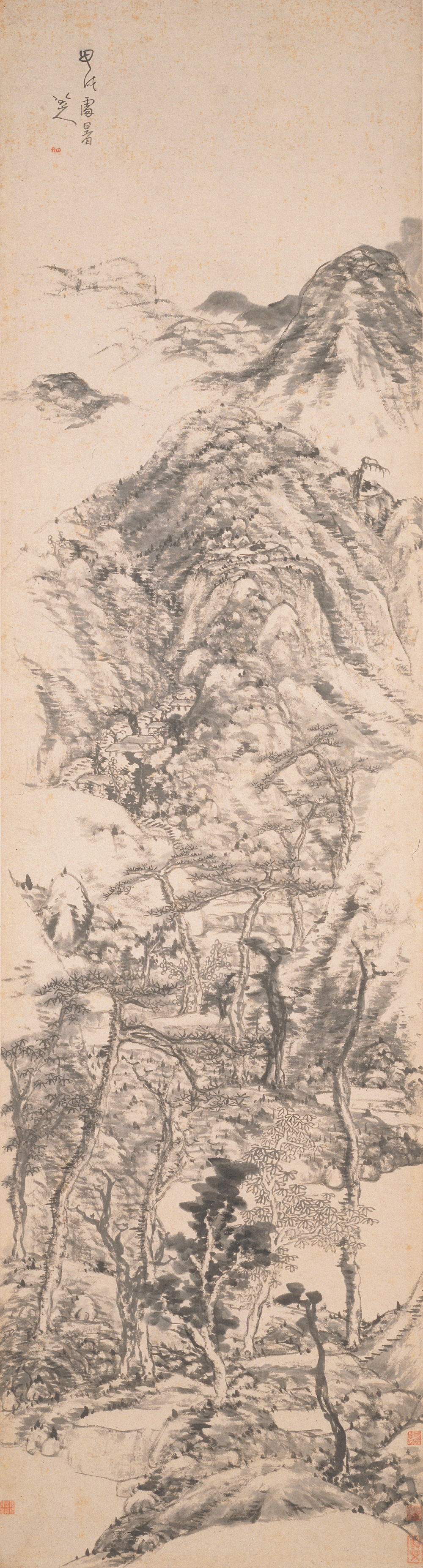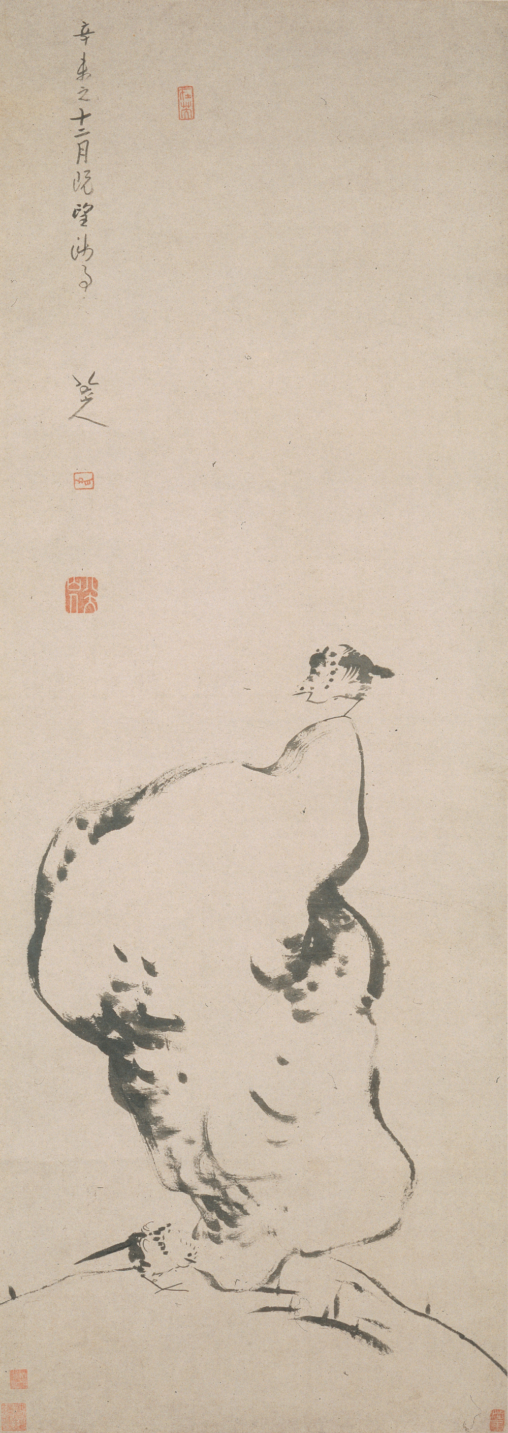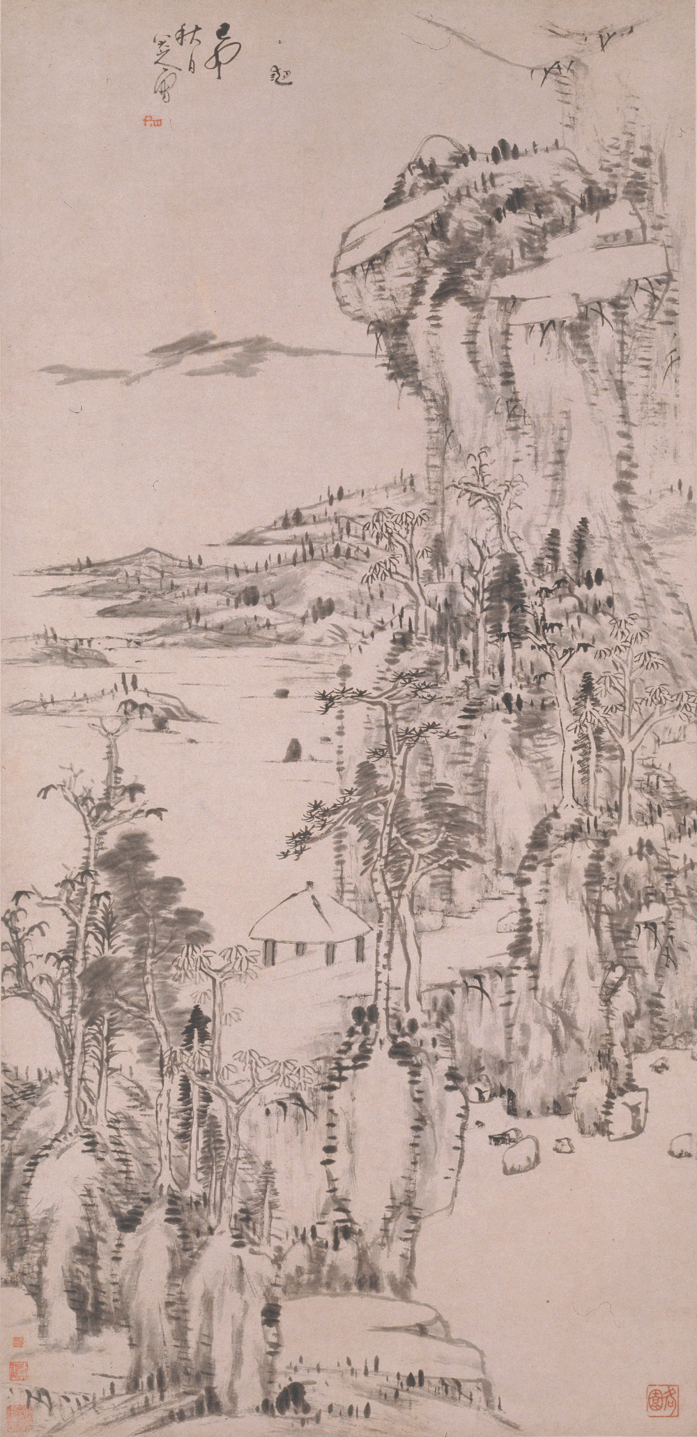 他是明太祖朱元璋第十七子朱权的九世孙,本是皇家世孙。明亡后削发为僧,成了亡命之徒,后改信道教,住南昌青云谱道院。擅书画,花鸟以水墨写意为主,形象夸张奇特,笔墨凝炼沉毅,风格雄奇隽永;山水师法董其昌,笔致简洁,有静穆之趣,得疏旷之韵。擅书法,能诗文,用墨极少。朱耷一生坎坷,曾一度精神失常,痛定思痛后,他选择背过身去,与世隔绝,在创作中安放自己孤独的灵魂。用他自己的话说,“墨点无多泪点多,山河仍是旧山河。横流乱世杈椰树,留得文林细揣摹。”