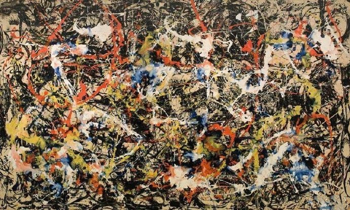 波洛克这幅画有其特殊的寓意。二战之后人们很难再回到战前的生活中了。新的生活需要新的艺术形式和生活哲学,波洛克这种在未处理的画布上直接泼洒颜料作画,完全颠覆了传统创作的方式,暗含了暴力、原始、 抒情、释放、匀质、多点、偶发性和无装饰性等因素,尤其包含了艺术中最可贵的部分——“永远的未完成”, 这使得人们相信世界的生生不息。