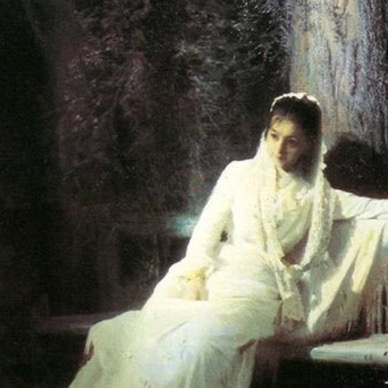 月夜】这是一幅被人誉为“爱情诗”的油画,它继承了俄罗斯艺术的民族性与文学性,叙述了一个美丽的故事。画家用银灰色的调子,来渲染恬静的夏夜,没有微风,参天的菩提树显得神秘幽邃,夜色中的蔷薇花散发出清香。这样的时刻,一个穿白色衣裙的美丽少女,独坐池塘边的长椅上,她面前的池塘中漂浮着睡莲和菖蒲。人物与环境处理得十分和谐,迷蒙的月光洒满林中,恍若仙境,令人向往,使人陶醉。俄国画家克拉姆斯柯依创作,现藏于特列恰柯夫美术馆。