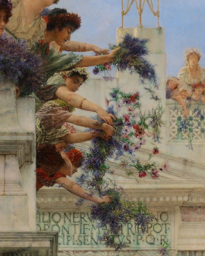 春(局部)1894 by 劳伦斯·阿尔玛-塔德玛Lawrence Alma-Tadema(英,1836-1912),J·保罗·盖蒂博物馆(J. Paul Getty Museum),洛杉矶
