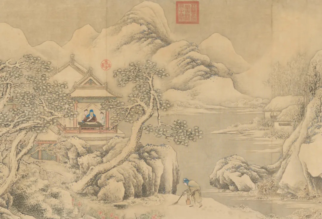 图 | 清《乾隆赏雪图》局部,纸本设色,纵98厘米,横205厘米 | 现藏于故宫博物院