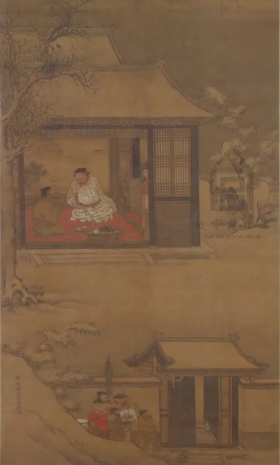 图 | 清《雍亲王题书堂深居图屏•烘炉观雪》,绢本设色,纵184厘米,横98厘米 | 现藏于故宫博物院