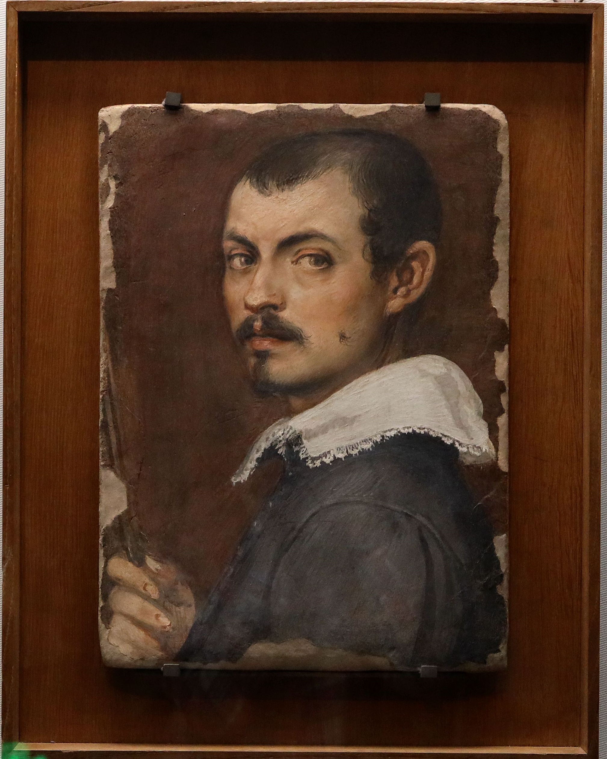 画家的一双眼睛朝向观众,散发出十七世纪传记作家所描述的忧郁深沉的气质。据传记记载,画家日以继夜地迷恋解剖学,同时不遗余力地学习绘画。他甚少与人交谈,是具有"土星"气质的悲观的艺术家,十分痴迷于创作。