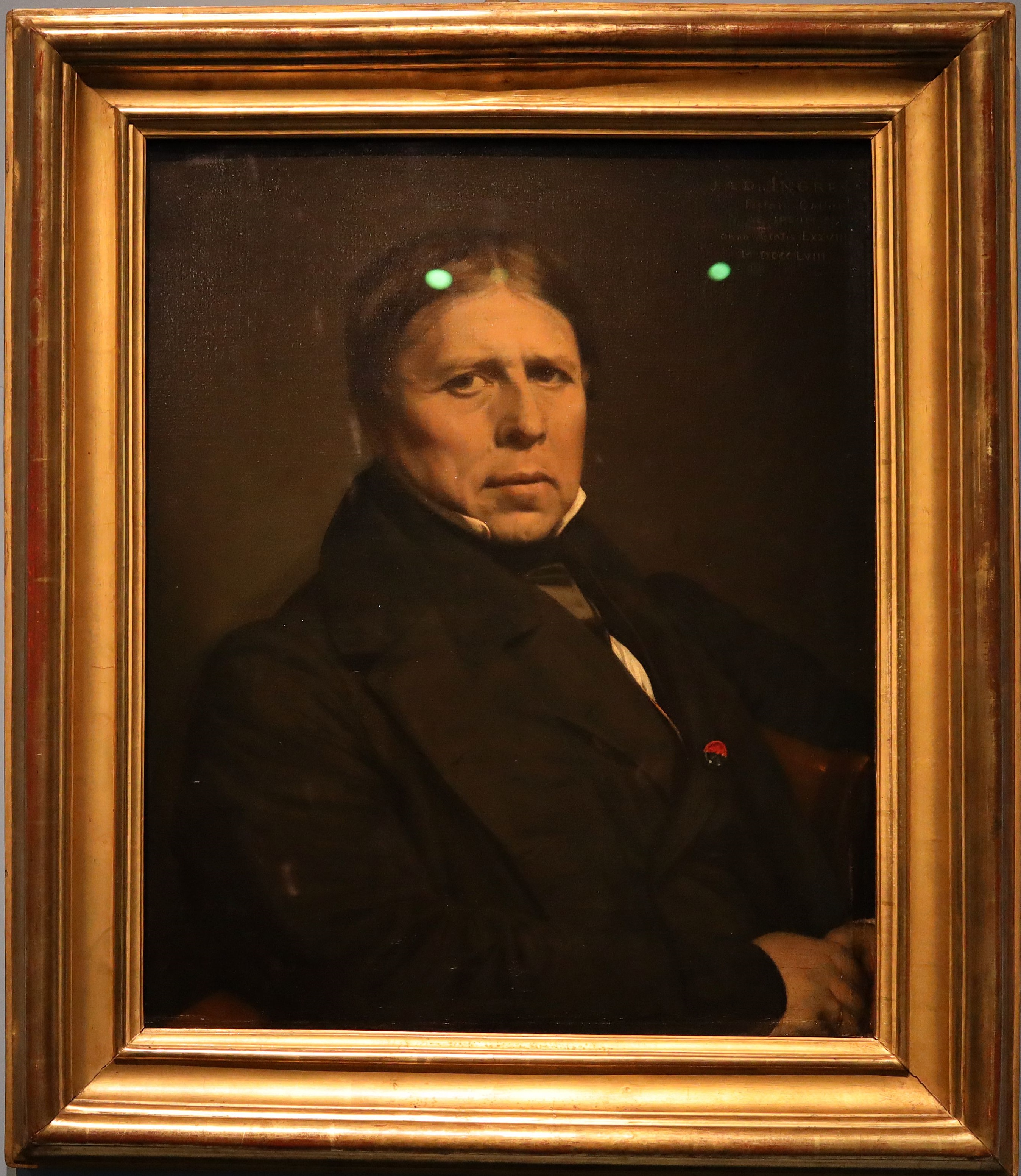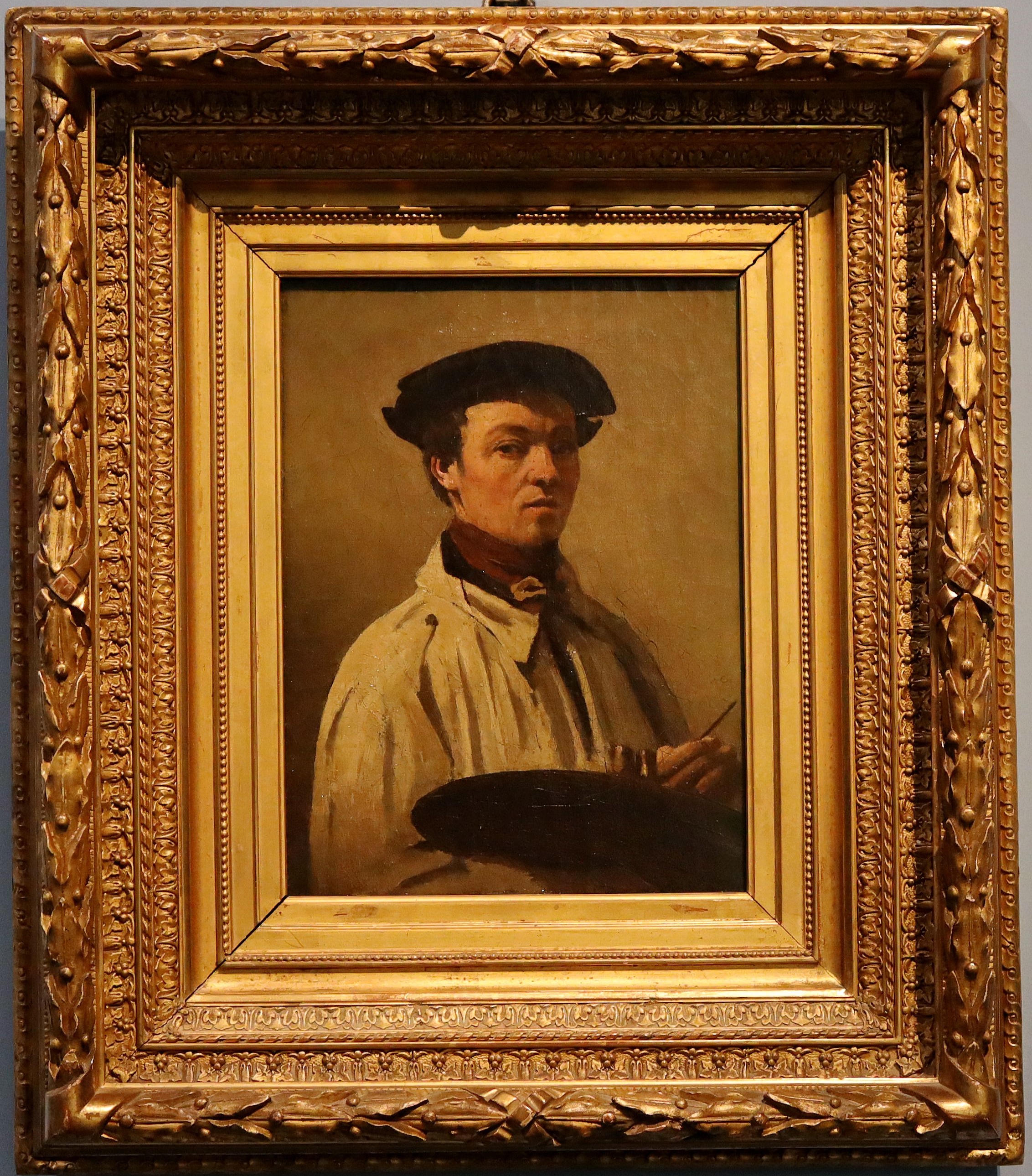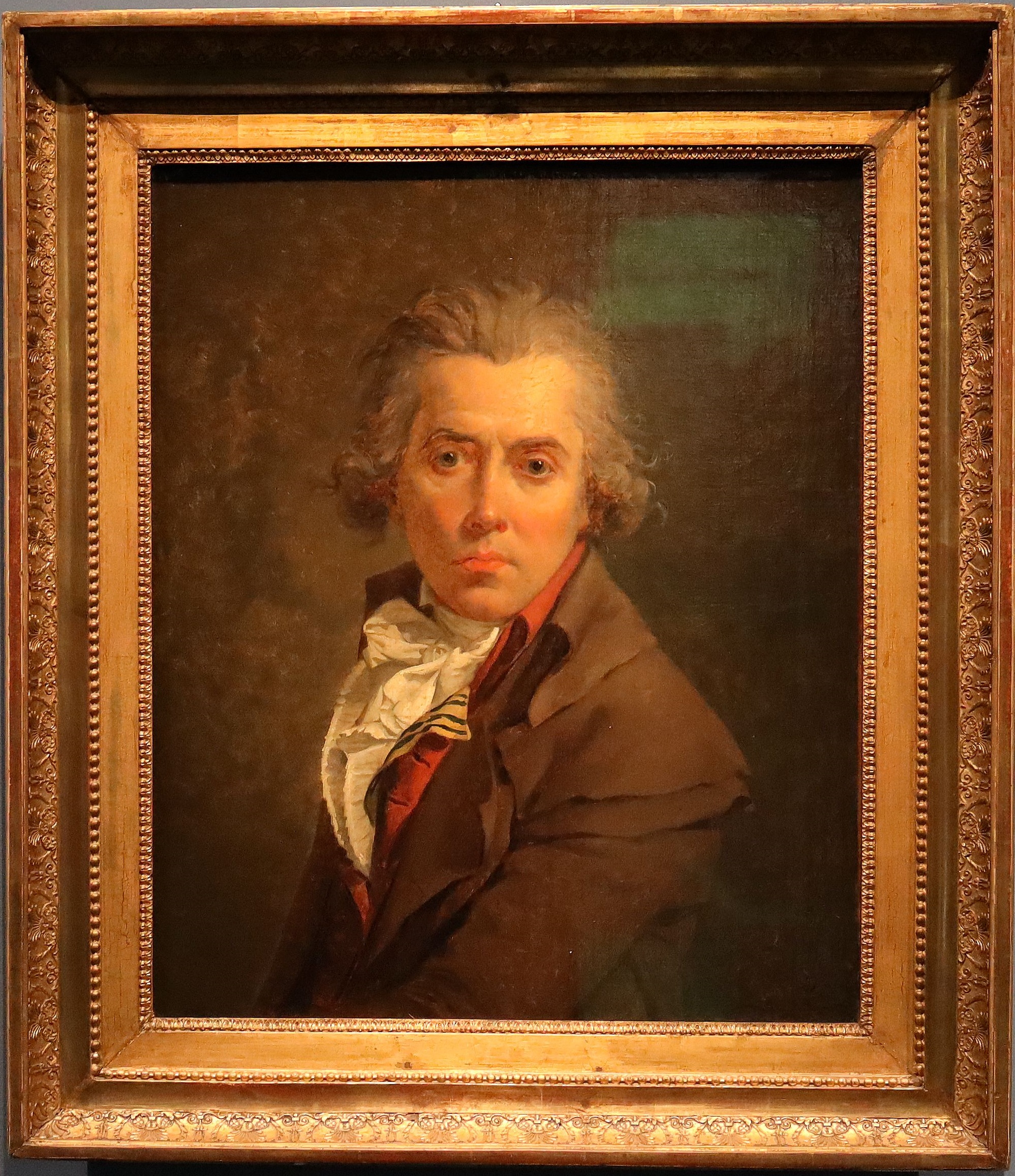 这是一幅特写,人物身体向前倾斜,脖子前伸,双眼凝视前方,最后这点甚至招来了一些评论,认为画中人物的眼神带有些许迷茫不安。出现这种神情也许是因为画家专注地盯着镜中的自己,想要捕捉自身的每一个细节,包括因伤疤而扭曲的右脸,在现实中,那是画家二十六岁时在击剑中受伤留下的印迹。在其几幅著名的作品中,大卫擅长简洁有力的叙事方式、刻画庄重的人物表情并按照严谨的几何原则构建的稳固构图,但在这幅自画像中,观者很难找这类风格的痕迹。我们可以假设,这是画家率意而为的自画像习作。