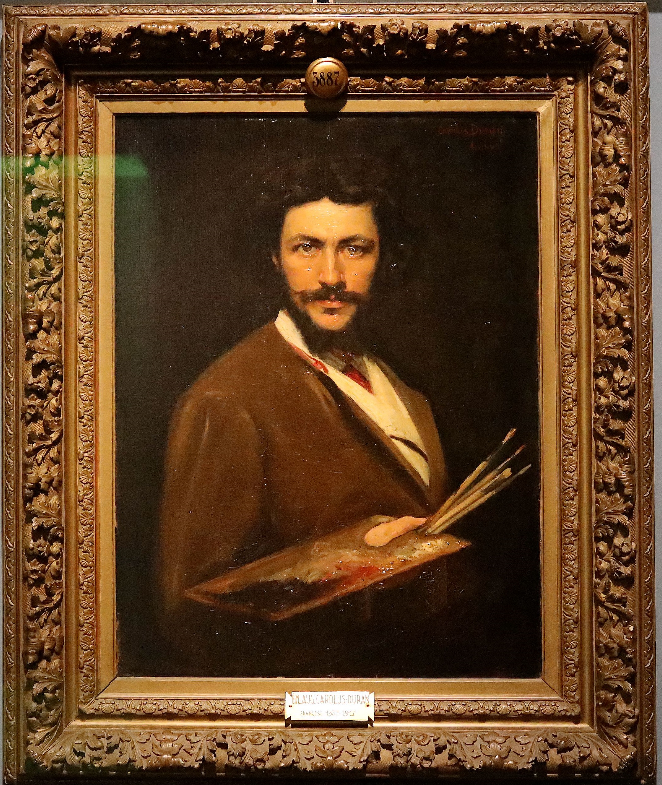 因此,这幅自画像给人的印象是真实的,正如他的头发尽管整齐地向后梳理,但额头上方已有凌乱的碎发,瞳孔中生动的反光,鼻尖温暖而微红的光影。白色领结和三层衣领被细致入微地描绘出来,显然是为了呈现当时的时尚品位。而对夹克的其余部分、阴影中的微红肤色、部分头发以及整个背景只是迅疾地一气呵成。