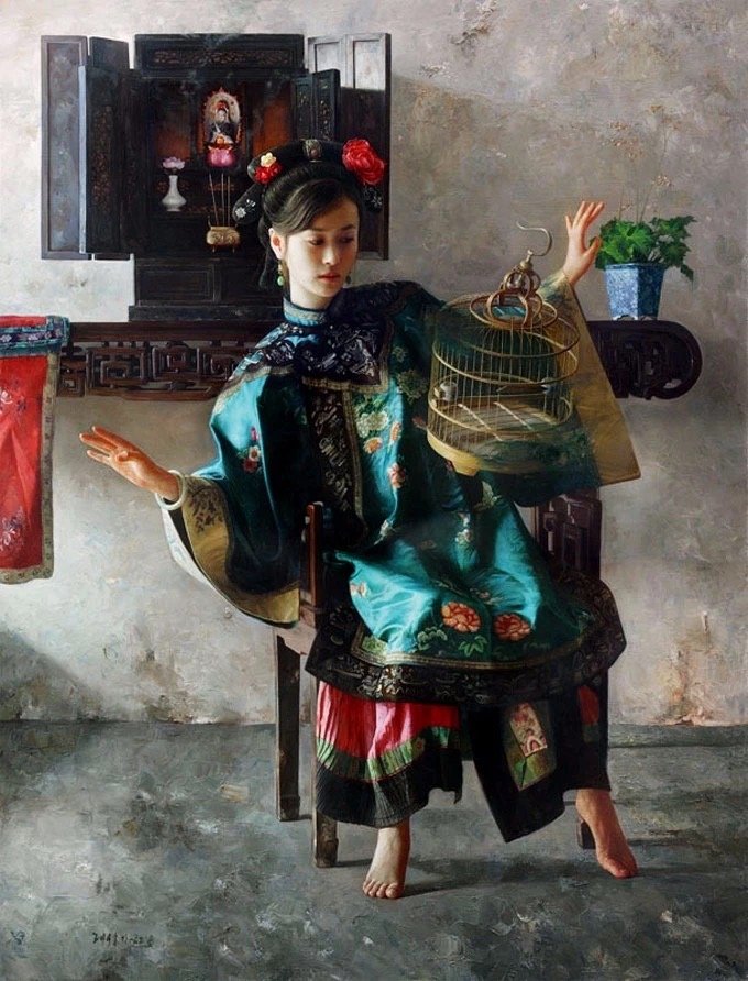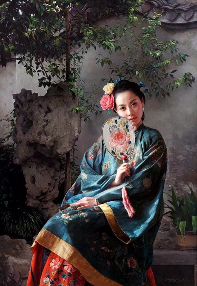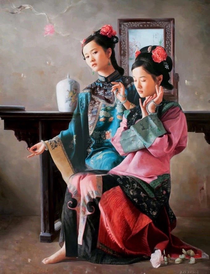 他用精细的笔触描绘了中国古代妇女的传统之美。王明月对人物画情有独钟,以写实的古典主义为表现手法,追求精深的唯美,并倾注以独特的东方韵味。