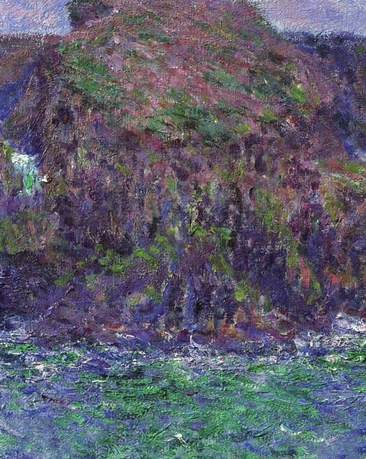 贝里岛的系列油画是莫奈艺术生涯的转折点,他开始探索同一主题在不同时刻的变化。在这幅作品中,莫奈运用了丰富的色彩,展现了贝里岛戈尔法港的岩石在特定时刻的光影效果。