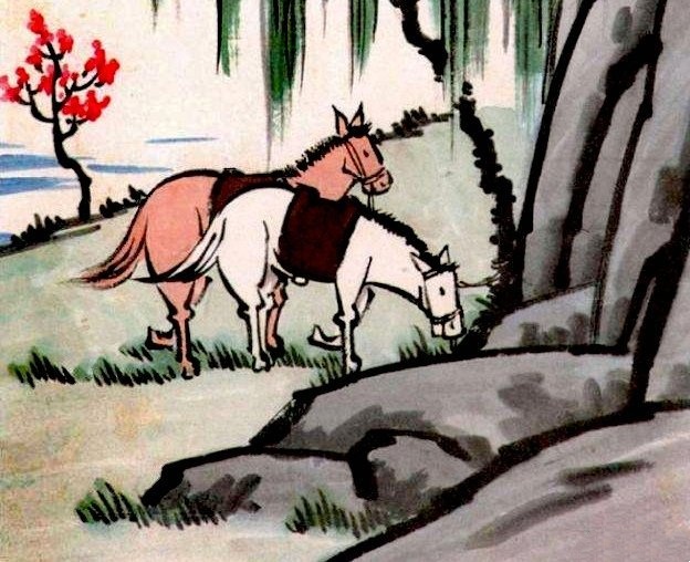 画中人不期而遇,遇见便意气相投。立刻拴马上楼,共饮几杯。
