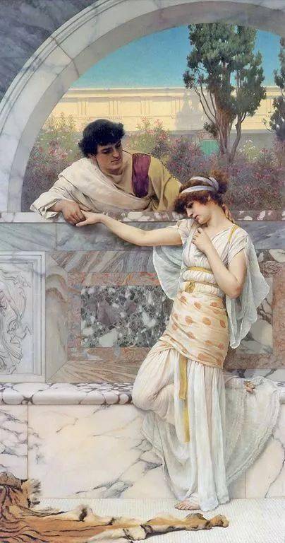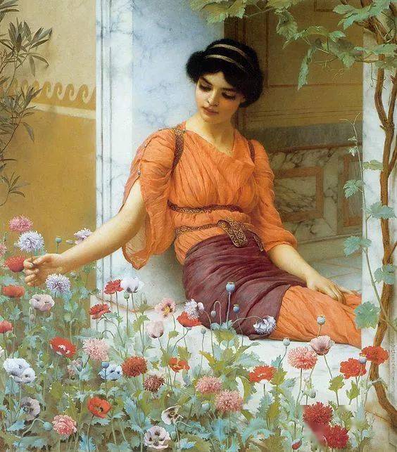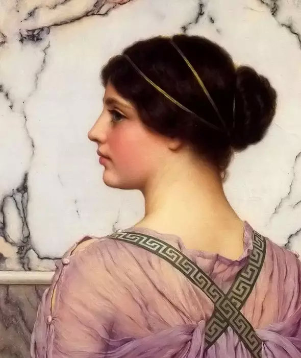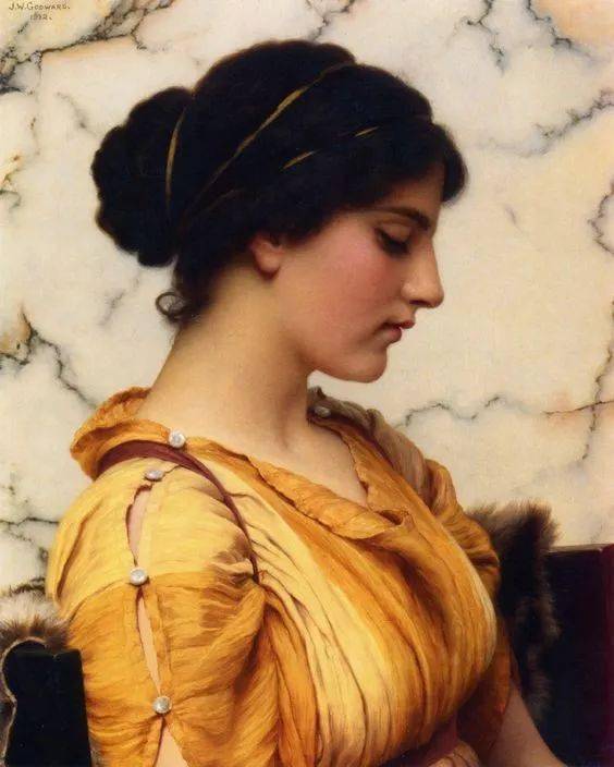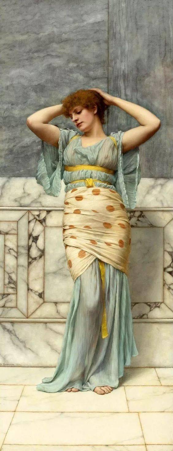 《希腊美女》一画中,坚硬冰冷的大理石背景,衬托出女孩柔美的身材曲线,衣服松弛的面料描绘的也惟妙惟肖,与细腻紧致的肌肤形成对比,画家格维得精细的描绘了少女若有所思的瞬间,别具韵味。