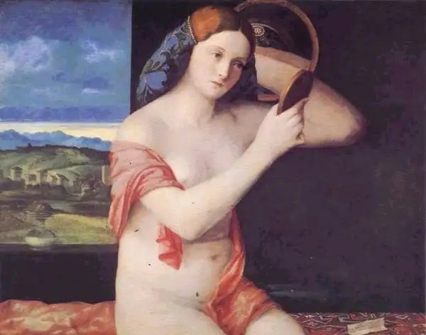 裸女照镜 贝利尼1515年布上油画62x79CM现藏维也纳艺术史博物馆