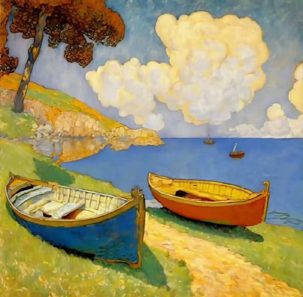 美国现代艺术家画家杰夫·布尔乔的小船
