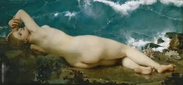 《珍珠和海浪》,目前由马德里普拉多博物馆珍藏!是保罗。1862年创作的一幅油画。它最初是由拿破仑三世的妻子高价收藏的,画面中一位美丽的少女枕着一袭长卷发,侧卧在碧波荡漾的礁石上,她似笑非笑,深情款款,其倾国倾城的回眸一瞬入画,其白皙光洁的背部,清晰的曲线条,以柔和的蓝色为主基调,相互融合在一起。在波浪和礁石,以及礁石上的贝壳衬托下,可谓是美不胜收!