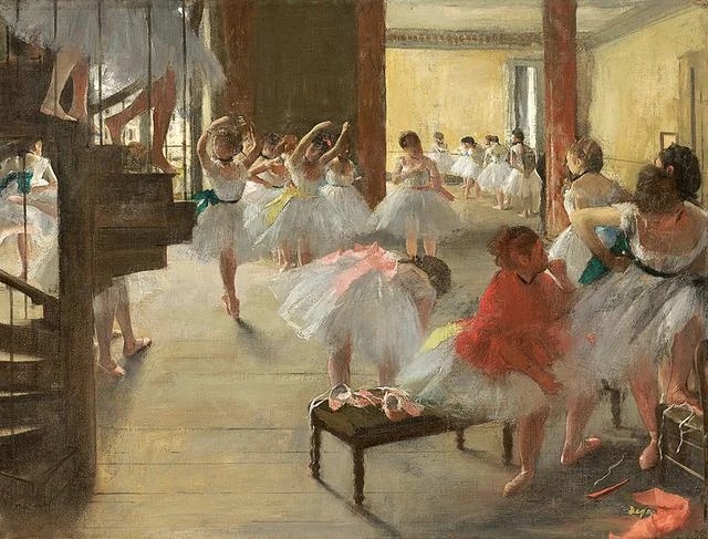 按这一线索来看,德加笔下的芭蕾舞女必定也不如表面的纯洁。事实也正是这样,在德加生活的19世纪,芭蕾舞在法国已经过时,地位非常低下。芭蕾舞女是歌剧院里最底层的人,被法国作家龚古尔称为“小老鼠”(the little rats)。当时芭蕾舞不仅不被看作高雅艺术,甚至沦落为公开的不得体的表演,坦白地说,人们只是为了饱览白花花的大腿才将芭蕾作为剧中的插曲。